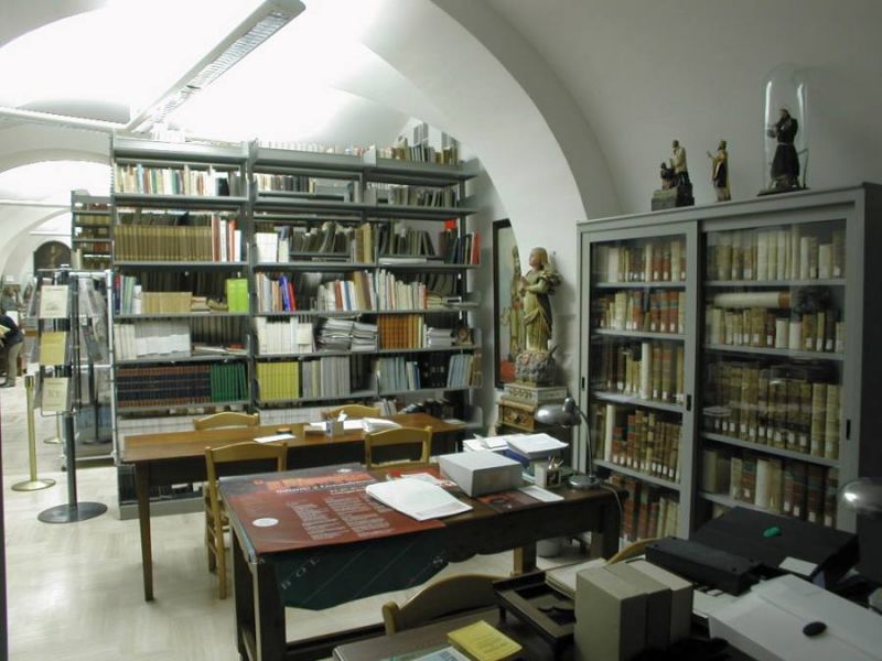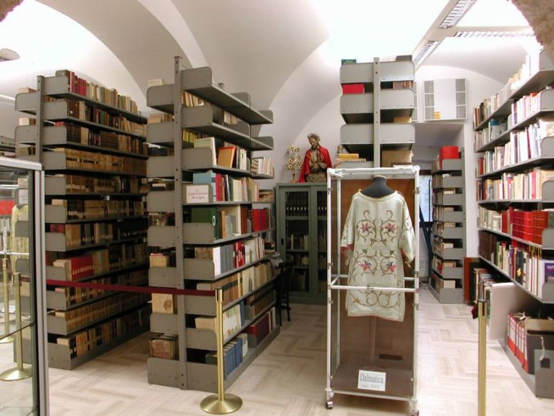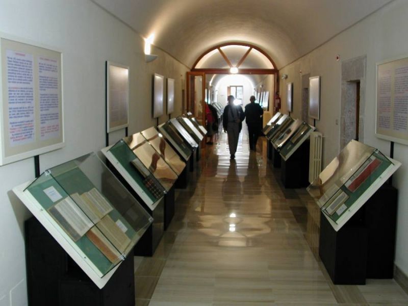 4 - Luce, temperatura, ventilazione e umidità Biblioteca del convento di s. Matteo a S. Marco in Lamis - Foto del 2000I libri sono fatti di materiali organici e quindi degradabili. Per la loro conservazione bisogna prendere determinate precauzioni. La carta dell’epoca preindustriale (prima del 1850/60) è sicuramente costituita da elementi che la rendono più attrezzata alla sfida con il tempo che non quella di epoca successiva. È sicuramente più difficile conservare integro un libro del nostro secolo che non un libro del seicento o del settecento. Certamente tutta altra storia è il loro valore storico ed economico e quindi le cure con cui tratteremo un libro dei secoli scorsi non saranno certo minori di quelle adottate per uno moderno. Luce, temperatura e umidità vanno controllate e mantenute entro certi limiti. La luce molto alta danneggia i libri: provoca un rapido deterioramento della carta e fa sbiadire gli inchiostri ed i pigmenti. I locali delle librerie dovrebbero essere protetti con tende dai raggi diretti del sole e, in ogni caso, vanno tenuti in penombra. L’esposizione dei libri, anche in bacheche apposite, non dovrebbe mai essere eccessivamente prolungata. Per la temperatura il discorso è analogo a quello della luce: più la temperatura è bassa meglio è. Un certo grado di umidità è necessario ai libri, in quanto una eccessiva secchezza li renderebbe molto fragili. Una eccessiva umidità provoca muffe, macchie e il proliferare di insetti nocivi. Un buon rimedio per risolvere i normali problemi dovuti ad una eccessiva umidità e condensa è una buona ventilazione negli scaffali. L’aria deve circolare anche dietro i libri. Particolare attenzione deve essere prestata per scoprire presenze di muffe. Solo i restauratori qualificati sono in grado di trattare i libri attaccati da muffe con prodotti fungicidi. L’arte del libro Biblioteca del convento di s. Matteo a S. Marco in Lamis - Una salaNel Medioevo l’oggetto-libro è un prodotto di alto artigianato: un contenitore, talvolta molto pregiato, organizzato al meglio per poter ricevere un contenuto di gran valore. Il libro del Medioevo è generalmente in forma di codice di pergamena o di carta. La pergamena si ricavava dalla pelle di vitello, ma più frequentemente di pecora e soprattutto di capra, pelle che doveva subire una lunga e accurata lavorazione. Innanzitutto doveva essere liberata sia dal pelo che dai residui di carne, e a questo scopo dopo essere stata rasata, veniva immersa in bagni di calce, alternati a risciacqui in acqua fresca, per poi essere tesa e messa ad asciugare. L’ultimo trattamento consisteva nel lisciare la superficie con una pietra pomice, così da ridurre al minimo le differenze tra il 'lato pelo', corrispondente alla parte esterna della pelle, di solito di colore giallastro e ruvido al tatto, e il 'lato carne', di colore più chiaro e più liscio e morbido. Biblioteca del convento di s. Matteo a S. Marco in Lamis - Foto del 2000Dalla pelle trattata, le cui dimensioni erano a volte molto grandi, nel caso di animali adulti, attraverso una serie di piegature si ricavavano i fogli che, piegati a loro volta a metà, venivano poi messi insieme, di norma da due a sei, a formare i fascicoli, che rappresentavano l’unità base del singolo codice. I fascicoli sovrapposti, in numero variabile, erano poi cuciti insieme e protetti con una legatura, così da formare il codice. Per evitare che la corretta sequenza dei fascicoli venisse scompaginata, accanto alla numerazione dei fogli, più raramente delle pagine, si adottavano la numerazione dei fascicoli e i richiami, consistenti nella scrittura nell’ultimo foglio di un fascicolo della prima parola del fascicolo successivo. La legatura poteva essere molto semplice: una coperta, di solito in tavoletta di legno poi rivestite di cuoio, o anche di cartone o di pergamena. Nel caso di libri importanti, magari commissionati da un sovrano o da offrire in dono a personaggi illustri, le legature erano di gran pregio: alcuni codici liturgici hanno legature che sono vere e proprie opere d’alta oreficeria, laminate d’oro e d’argento inciso, su cui si incastonano pietre preziose, piastre eburnee decorate a rilievo, perle. Nel Medioevo la pergamena rimase il supporto esclusivo della scrittura fino al XII secolo, cioè fino a quando fece la sua comparsa, diffondendosi progressivamente, la carta. Arrivata dalla Cina in Europa attraverso la Spagna, la carta fu prodotta in particolare in Italia, ma all’inizio non fu apprezzata come la pergamena, perché considerata meno resistente. Biblioteca del convento di s. Matteo a S. Marco in Lamis - Uno 'psalterio' - Foto del 2001Come scriveva lo scriptor, lo scrittore? Quali erano i suoi strumenti di lavoro? Lo scrittore scriveva appoggiandosi di norma su un piano inclinato, talora sostituito da un banco con piano d’appoggio orizzontale, su cui erano collocati gli strumenti della scrittura, il calamaio per l’inchiostro e il raschietto per cancellare gli errori. Prima di scrivere il testo, la superficie del foglio veniva divisa razionalmente e geometricamente, attraverso una complessa distribuzione degli spazi che ne determinano la cosiddetta mise en page, cioè l’assetto complessivo della pagina, nella sua divisione fra il bianco, parti non scritte, e il nero, quelle occupate dalla scrittura. Prima di avviare la scrittura, di incardinare lo scritto all’interno della pagina, lo scriptor doveva curare anche [al]la mise en texte, ossia il modo in cui il testo viene organizzato al suo interno: decorazioni, punteggiature, lettere iniziali, paragrafi, titoli… Quanto tempo impiegava un copista a scrivere un foglio?