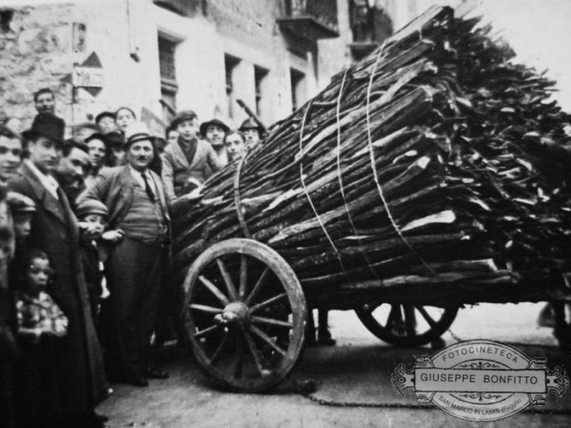 E in quale altra maniera i giovani di oggi potrebbero conoscere l'epica povertà degli anni '30, rappresentata da un fascio di legna sulle spalle di un orfanello scalzo? Lo vediamo al centro di un'ampia strada, questo povero orfanello, sotto il fascio di quel po' di legna che spera di vendere a qualche anima buona giù in paese.