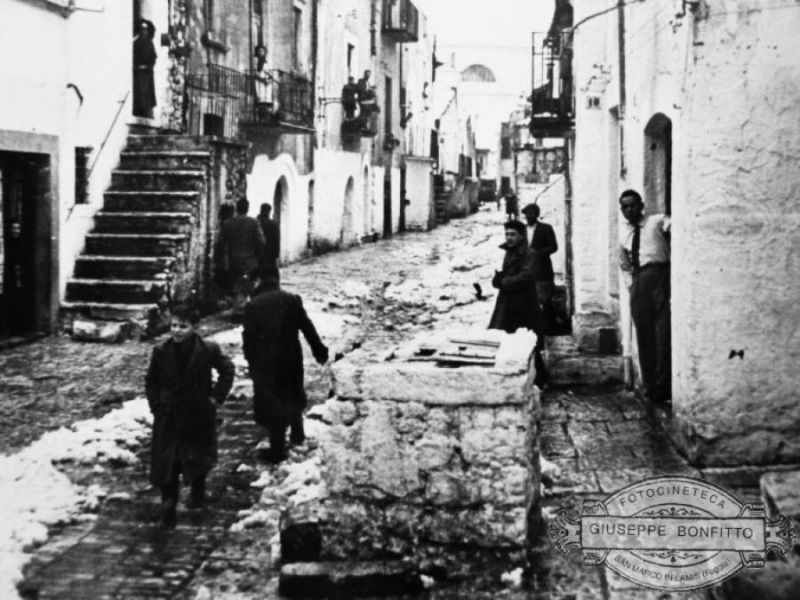 A che servono queste foto di Bonfitto? A ricordarci un passato che, se non fosse ancora presente, annullerebbe la nostra identità. Il Convento di San Matteo, che dal Viale vedevamo svettante e vigile osservatore delle nostre oziose passeggiate, da quel Viale non si vede più, ma è lì, ancora lì, ai piedi del Celano, a ricordarci chi siamo. E servono, queste foto, a preservare un passato che è per sempre scomparso ma vive ancora nel nostro malinconico rimpianto: le tonacelle delle nostre nonne con quelle innumerevoli pieghe che, più che abbellire, proteggevano l'atavica castità che era la base della famiglia cristiana e 'timorata di Dio'; e quei pozzi dietro il campanile della Collegiata, specie quello detto Puzze 'la Chiazza, al lato sinistro dell'ingresso della Chiesa, dove sull'imbrunire di giornate solatie si vedevano lunghe code di donne venute dall'Addolorata e da San Bernardino per riempirsi di quell'acqua freschissima secchi e bottiglie, e per una visitina al centro storico, ai sottani di Via Palude sempre protetti da provvidenziali reti intrecciate con arte.
