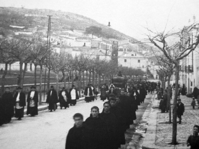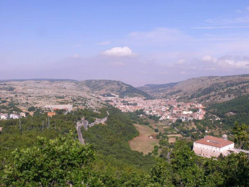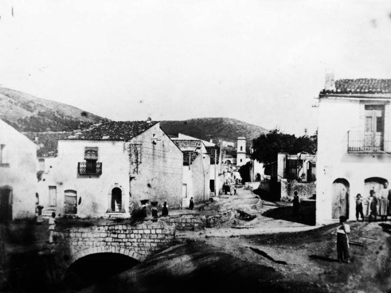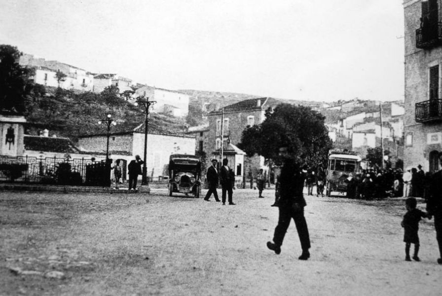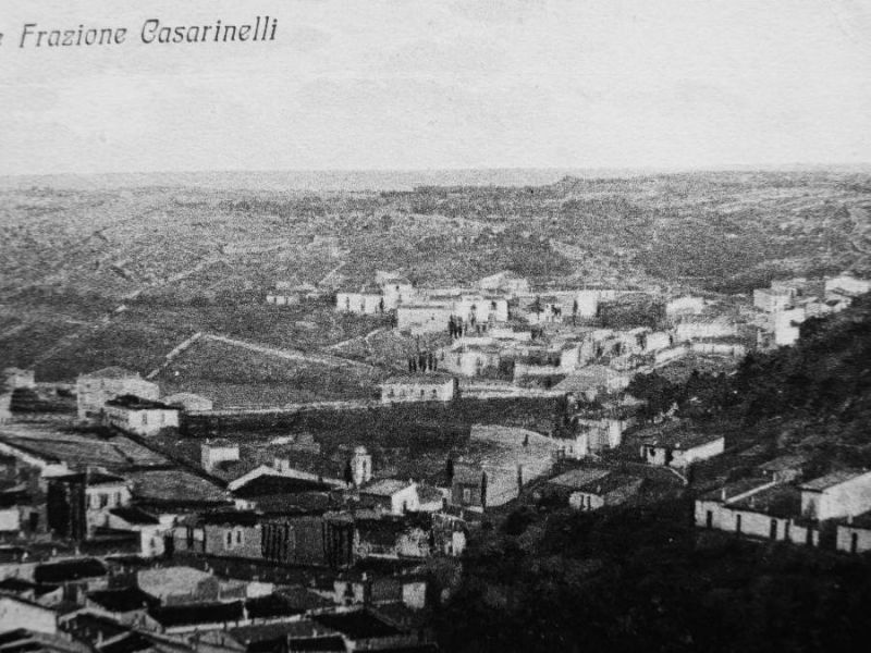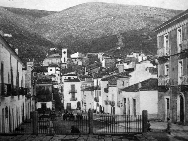 Note di toponomastica sammarchese tra mito e storia Il massiccio del Gargano visto dalla pianura venendo da nord.Ho sott'occhio un libretto di Matteo Ciavarella, Fra orti e mugnali (Nota 1). E’ un elenco delle strade di S. Marco in Lamis, ciascuna corredata della sua cronistoria. Precede un buon compendio storico del paese ed una prefazione del Tusiani. E’ un bel libro. Ne ho scorso le pagine ed alcune strade mi hanno parlato: le strade raccontano a chi le ha percorse nella prima infanzia, le ha riviste nell'età matura, le ricorda - ed ha scoperto di amarle - nell'età avanzata, con la nostalgia del vecchio emigrante. Nella rubrica televisiva Almanacco del giorno dopo nel 1983 è piú volte presentata una voce: Le pietre raccontano; le strade mi parlarono molto tempo prima, me ne è buon testimone il mio amico prof. Tommaso Nardella ... Via Carducci, Via Roma, piazza Madonna delle Grazie, la Padula, via lungo Iana, via pozzo grande, via Starale. Voci e sussurri, racconto antico della primitiva S. Marco. Racconto che in parte illumina tempi protostorici, in parte tempi di storia certa, ricordati da Ciavarella, a partire dal 1500-1600. S. Marco in Lamis. La facciata della Chiesa del Purgatorio, in Via G. Carducci già Strada del Purgatorio.Dice il Ciavarella: "via Carducci ... dal 1809 al 1931 aveva portato la denominazione di strada del Purgatorio, che traeva origine dalla Chiesa del Trionfo del Purgatorio fatta costruire nella prima metà del seicento dal sacerdote don Angelo Pupillo, che fu anche il fondatore della confraternita delle Anime del Purgatorio, riconosciuta dal sovrano nel 1777". Ho dei dubbi: come si chiamò quella strada dal 1500-1600 al 1809? E se invece la strada si fosse già chiamata via del Purgatorio per voce popolare, dai tempi della costruzione della chiesa omonima; o se addirittura la strada si fosse già chiamata così, e la chiesa ne avesse preso il nome? La via Carducci oggi è una strada anodina: asfaltata, in salita, stretta se si misura col metro delle strade moderne. Io la ricordo, da bambino, diversa e più significativa: la strada del Purgatorio mi sembrava - ed era per quei tempi - straordinariamente larga. Nella parte alta dalla piazza di sopra (corso Giannone) alla Chiesa era una scalinata larga di pedata e bassa di alzata, acciottolata. Ai margini aveva due marciapiedi larghi, diversamente costituiti. S. Marco in Lamis. Corso Matteotti, già Corso Umberto I, denominato comunemente 'chiazza di sotto'.Dall'altezza della Chiesa al suo sbocco nella piazza di sotto, già piazza seconda ed ora corso Matteotti, la strada si restringeva, ed aveva una lieve pendenza. Sembrava una strada fatta per contenere adunanza di popolo a monte della Chiesa e fino al sagrato, e per consentire a valle il deflusso dell'adunanza. S. Marco in Lamis. Vecchia immagine di inzio '900 di Via Roma.Via Roma: "è una delle principali strade della città... tutt'ora indicata con la primitiva denominazione: 'la strada del ponte' (da La Strada Ponte delle Grazie) così detta da un ponticello costruito, in tempi abbastanza remoti, allo scopo di permettere ai cittadini un più agevole passaggio sul torrente Iana ......' 'L'antica denominazione di strada Ponte le Grazie rimase in vigore fino al 1907... " Così il Ciavarella. S. Marco in Lamis. Vecchia veduta dei due ponti che attraversavano il torrente Iana.All'inizio del secolo, e come la ricordo io, la Strada del Ponte iniziava dalla Piazza di Sotto (via Matteotti) e terminava al ponte. Il ponte scavalcava il torrente quasi a metà del suo percorso urbano, e non era un ponticello: aveva la stessa larghezza della strada, era fiancheggiato da spallette. Subito dopo il ponte la strada, ed il sobborgo delle Grazie, si allargava, e le pareti laterali delle case fiancheggiavano il torrente. Ancora all'inizio del secolo anche il ponte si allargava. Qui i miei ricordi si fanno confusi; ma mi sembra che esso diventasse copertura del letto torrentizio, già divenuto scarico di acque luride e di immondizie e fortemente maleodorante; un pezzo di tombinatura ante litteram, che poi fu seguito, dopo molti anni (molti... non so quanti, ero già studente inforestierato) dalla copertura lungo tutto il percorso del torrente fino al Puzzu ranne. S. Marco in Lamis. Il Largo Piano come appariva.(Piazza) Largo delle Grazie. Dice Ciavarella: ... "la denominazione trae origine dalla chiesa dedicata a Maria SS.ma del Rosario e a Cristo Redentore, ma intesa comunemente come la Chiesa della Madonna delle Grazie. Ritenuta da qualcuno come la Chiesa più antica di S. Marco ... " Ricordo il S. Marco degli inizi del secolo, quale io lo vedevo, e lo vide il Bacchelli: appiattito sulle pendici del monte, dal rione San Giuseppe a quello dell'Addolorata e di San Berardino. Il paese era pressoché tutto lì ordinato in file di case perpendicolari all'asse della valle, le più alte di 2-3 piani verso il fondo valle, e sempre più basse lungo le strade a gradoni risalenti sul monte. S. Marco in Lamis. Il quartiere 'Casarinelli'.Il panorama andava visto da Casarinelli, ed io bambino lo vedevo, di giorno e di sera, da Le Pietre, la casetta di campagna che mio padre si era fatta costruire anticipando la consuetudine del weekend (Le Pietre si vedono, isolata casetta sul profilo del monte, nel quadrante alto a sinistra della figura 25 della raccolta iconografica di Bonfitto e Nardella) (Nota 2). Da lassù io vedevo il paese distendersi ai miei piedi: linee di coppi e stradine allineate e parallele. La massa era tagliata trasversalmente dalla linea dei corsi piazza di sopra e piazza di sotto, e dalla linea del torrente. Sporgevano in avanti i rioni al di qua del torrente: l'Addolorata, le Grazie, il polmone verde dei grandi platani della Villa. Veduta aerea di S. Marco in Lamis. Era il 1972.L'allineamento delle strade sfalsava fra i vari dispiegamenti del paese da est ad ovest; cioè erano tutte parallele e discendevano dal piede delle Coppe (credo si chiami così il monte a n