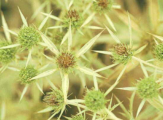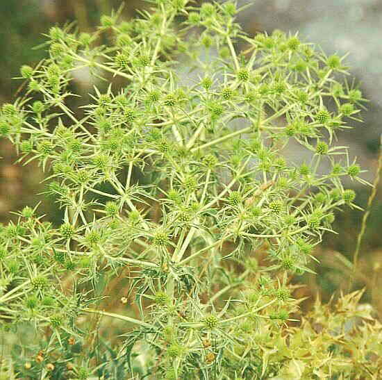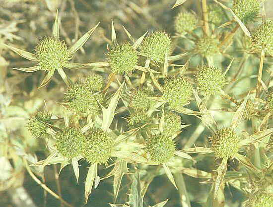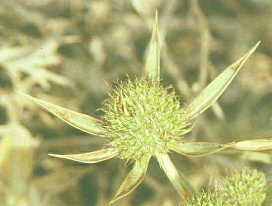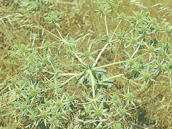 Eryngium campestre L. Calcatreppola campestre, Bocca di ciuco, Eringio campestre. Classe: Dicotiledoni, Famiglia: Umbrelliferae.